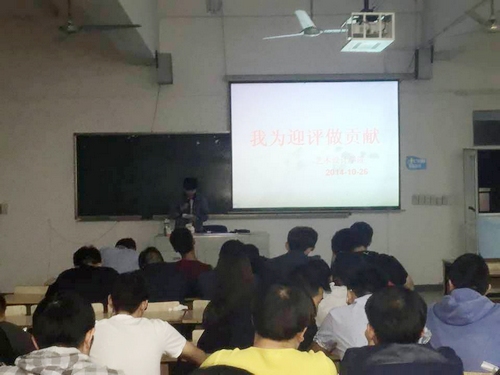 为深入落实学院的“五不”要求,进一步加强班风学风建设,10月26日晚,“周恩来班”艺术设计学院13级平面班在2221教室开展了“我为迎评做贡献”的主题班会活动,13级建筑装饰、数字媒体、产品、装潢1、2同学参加主题班会。主题班会由辅导员翟知良主持。